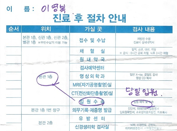 ÀÇ»çÀÇ Áö½Ã·Î °£È£»ç°¡ ÀÛ¼ºÇØ ÁØ ÀÌ¿µº¹ ¾¾ÀÇ ‘Áø·á ÈÄ ÀýÂ÷ ¾È³»¹®’