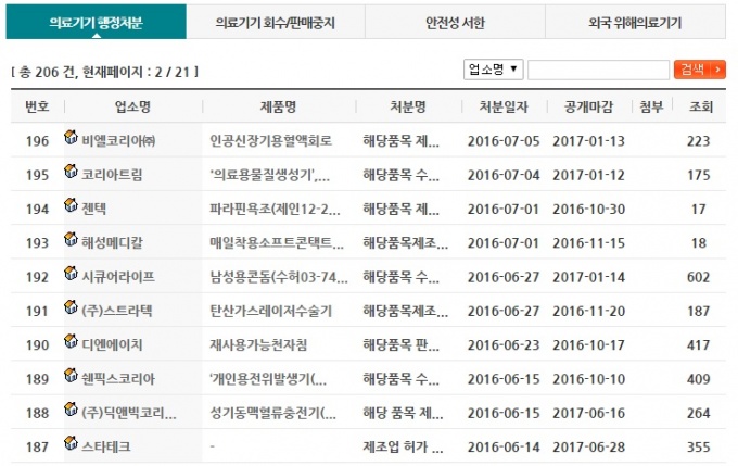 µ¥Àϸ®¸Þµð°¡ ÃÑ 137°ÇÀÇ 2016³â »ó¹Ý±â ÁÖ¿ä ÀÇ·á±â±â ÇàÁ¤Ã³ºÐ °á°ú¸¦ ºÐ¼®ÇÑ °á°ú, »ó½ÀÀû(2ȸ ÀÌ»ó)À¸·Î ÀÇ·á±â±â¹ýÀ» À§¹ÝÇÑ ¾÷ü°¡ 9°÷¿¡ ´ÞÇß´Ù. ¶Ç ¹«Çã°¡ ¹× º¯°æ ¹ÌÇã°¡ ÀÇ·á±â±â¸¦ ÆÇ¸ÅÇÏ´Ù Àû¹ßµÈ ¾÷ü´Â 12°÷À¸·Î È®ÀεƴÙ.