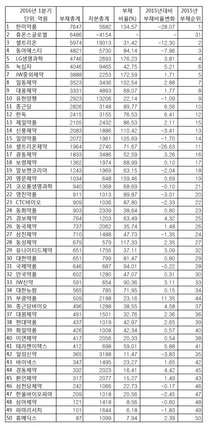 µ¥Àϸ®¸Þµð°¡ ÁֽĻóÀå Á¦¾à·¹ÙÀÌ¿À »óÀ§ 50°³ ±â¾÷ÀÇ ºÎä¾× ÇöȲÀ» Á¶»çÇÑ °á°ú, Á¦¾à»çµéÀÇ Æò±Õ ºÎä¾×Àº 1638¾ï¿øÀ¸·Î 2015³â 1555¾ï¿ø ´ëºñ 83¾ï¿øÀÌ Áõ°¡Çß´Ù.