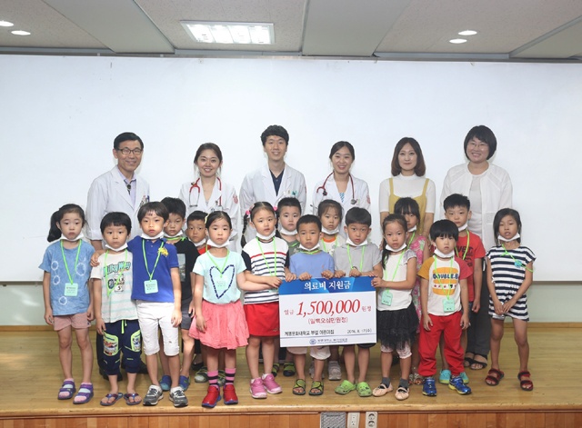 °è¸í¹®È´ë ºÎ¼³¾î¸°ÀÌÁý(¿øÀå À±Á¤ÀÓ) ¿ø¾ÆµéÀÌ 17ÀÏ °è¸í´ë µ¿»êº´¿øÀ» ã¾Æ ¼Ò¾Æ¾Ï ȯ¿ì Ä¡·áºñ·Î ¼º±Ý 150¸¸¿øÀ» Àü´ÞÇß´Ù.