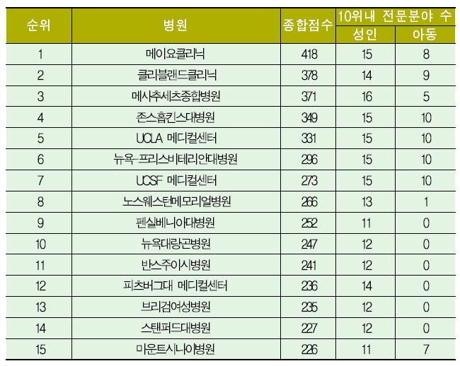 2À§´Â Ŭ¸®ºí·£µåŬ¸®´Ð, 3À§´Â ¸Þ»çÃß¼¼Ã÷Á¾ÇÕº´¿ø, 4À§ Á¸½ºÈ©Å²½º´ëÇк´¿ø, 5À§ UCLA¸ÞµðÄü¾ÅͰ¡ Â÷ÁöÇß´Ù.