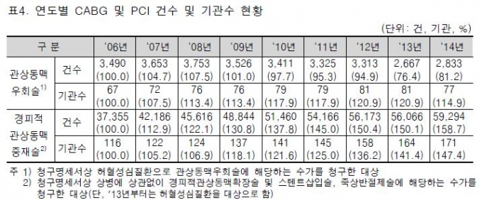 Áö³ÇØ 10¿ùºÎÅÍ ±Ý³â 9¿ù±îÁö 1³â°£ Áø·áºÐÀ» Åä´ë·Î 4Â÷ °ü»óµ¿¸Æ¿ìȸ¼ú(CABG) ÀûÁ¤¼ºÆò°¡°¡ ÁøÇàµÈ´Ù.