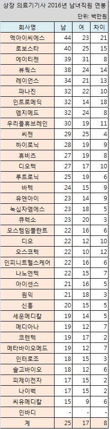 µ¥Àϸ®¸Þµð°¡ 7ÀÏ 36°³ »óÀå ÀÇ·á±â±â ¾÷üÀÇ ¹Ý±âº¸°í¼¸¦ ºÐ¼®ÇÑ °á°ú, ÀÌµé ¾÷üÀÇ ¿Ã »ó¹Ý±â(1~6¿ù) ³²¼º Á÷¿øµéÀÇ 1ÀÎ Æò±Õ ±Þ¿©¾×Àº 2520¸¸¿øÀ¸·Î ¿©¼º Á÷¿ø(1700¸¸¿ø)º¸´Ù 820¸¸¿ø ³ôÀº °ÍÀ¸·Î Á¶»çµÆ´Ù.