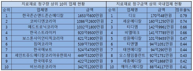 Ä¡·áÀç·á û±¸·® °ü·Ã ¿ÜÀÚ»ç¿Í ±¹³»»çÀÇ °ÝÂ÷°¡ ¸Å¿ì Å« °ÍÀ¸·Î È®ÀεƴÙ.