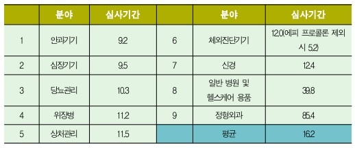 2016³â »ó¹Ý±â FDAÀÇ ºÎ¹®º° ÀÇ·á±â±â ½ÂÀÎ Æò±Õ ½É»ç±â°£(°³¿ù, ªÀº ¼ø)
