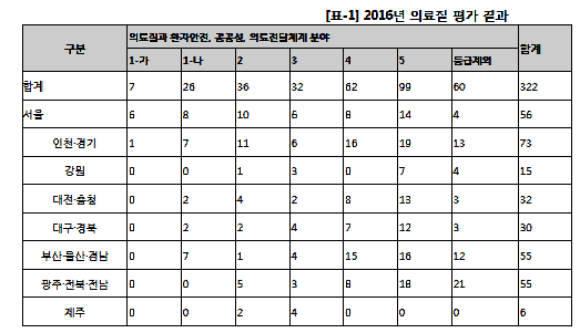 Àü±¹ »ó±ÞÁ¾ÇÕº´¿ø°ú Á¾ÇÕº´¿øÀ» ´ë»óÀ¸·Î 2016³â ½ÃÇàÇÑ ÀÇ·áÁú Æò°¡¿¡¼ 1µî±Þ Æò°¡¸¦ ¹ÞÀº º´¿øÀº ´ëºÎºÐ ¼öµµ±Ç ¼ÒÀçÀÇ ±â°üµéÀ̾ú´Ù.