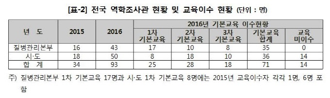 Áúº´°ü¸®º»ºÎ ¼Ò¼Ó ¿ªÇÐÁ¶»ç°üÀº ¿ÃÇØ 35¸íÀÌ ±âº»±³À°À» ¹Þ¾Ò°í, ³ª¸ÓÁö´Â 2013³âºÎÅÍ 2015³â±îÁö ¸ðµÎ ±âº»±³À°À» À̼öÇß´Ù.