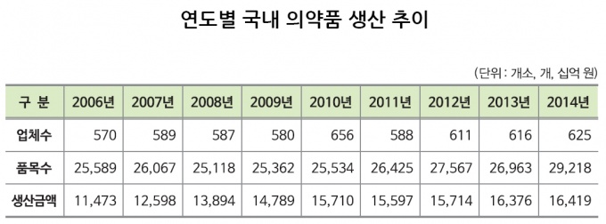 À̰÷¿¡¼ »ý»êµÇ´Â ÀǾàǰ¸ñ¼ö´Â 2006³â 2¸¸5589°³¿¡¼ 2014³â 2¸¸9218°³·Î ǰ¸ñ¼ö°¡ Å©°Ô È®´ëµÆ´Ù.