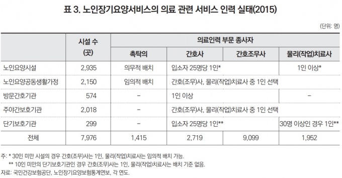 ¼±¿ì´ö À§¿øÀº “ÃËŹÀÇ Àǹ« ¹èÄ¡°¡ ÇÊ¿äÇÑ ³ëÀοä¾ç½Ã¼³Àº 2015³âµµ ¸» ±âÁØ 2935°÷ÀÌÁö¸¸ ÃËŹÀÇ ¼ö´Â 1415¸í, °£È£»ç´Â 2719¸í, °£È£Á¶¹«»ç ¼ö´Â 9099¸í Á¤µµ¿´´Ù”¸ç “°á±¹ ÀǷἺñ½º¸¦ Á¦´ë·Î Á¦°øÇÏ´Â Àå±â¿ä¾ç±â°üÀÌ »ó´çÈ÷ ºÎÁ·ÇÑ °ÍÀ¸·Î º¸Àδٔ°í ºÐ¼®Çß´Ù.