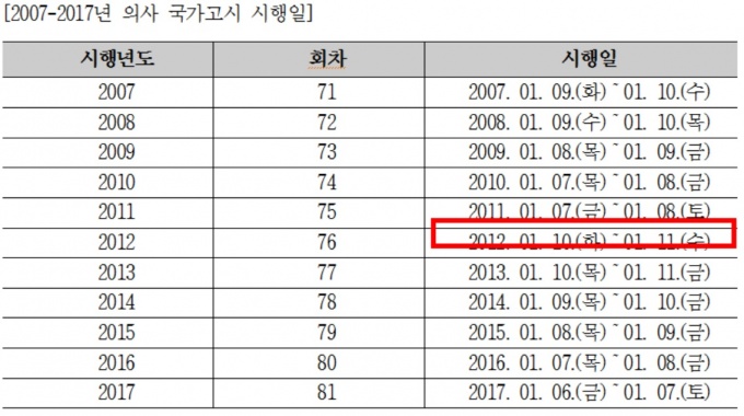 Çѱ¹º¸°ÇÀÇ·áÀα¹°¡½ÃÇè¿ø(ÀÌÇÏ ±¹½Ã¿ø)ÀÌ Á¦ÃâÇÑ ÀÚ·á¿¡ µû¸£¸é Áö³ 10³â°£ ÀÇ»ç ±¹°¡°í½Ã´Â 2011³â ´Ü ÇÑ Â÷·Ê¸¦ Á¦¿ÜÇϰí´Â ¸ðµÎ ÁÖÁß ÆòÀÏ¿¡ Ä¡·¯Áø °ÍÀ¸·Î ³ªÅ¸³µ´Ù.