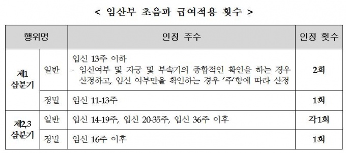 29ÀÏ °Ç°º¸Çè½É»çÆò¿ø¿¡ µû¸£¸é ¿¬°£ 43¸¸ ¸íÀÇ ÀÓ»êºÎ¿¡ 7ȸ±îÁö ÃÊÀ½ÆÄ °Ë»çºñ ÀϺθ¦ Áö¿øÇÏ´Â µî º¸À强 °È°¡ ÀÌ·ïÁø´Ù. ÀÌ´Â ÀϺ»(4ȸ), ÇÁ¶û½º(3ȸ)º¸´Ù ³ôÀº ±Þ¿© ÀÎÁ¤ ¼öÁØÀÌ´Ù.