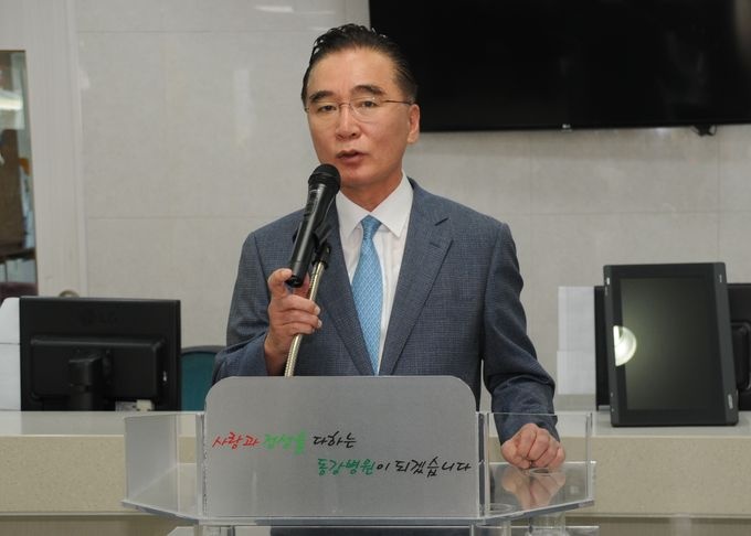 ÁÖÀοí ÀÇ·á¿øÀåÀº “¿ï»ê½Ã¹ÎÀÌ °¡Àå ¼±È£ÇÏ´Â º´¿ø, µ¿³²±Ç ÃÖ°íÀÇ º´¿øÀ̶ó´Â ºñÀü ´Þ¼ºÀ» À§ÇØ ¿Â ÈûÀ» ´ÙÇÒ °ÍÀ» ¸Í¼¼ÇÑ´Ù”°í ¸»Çß´Ù.