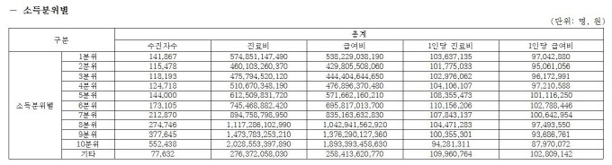 ¼Òµæ ºÐÀ§º°·Î´Â ¼Òµæ°ú Àç»ê »óÀ§ 10%¿¡ ÇØ´çÇÏ´Â 10ºÐÀ§ ȯÀÚ°¡ ÀüüÀÇ 23.89%¿¡ ÇØ´çÇÏ´Â ¾à 55¸¸ 2000¸íÀ¸·Î ¼ÒµæºÐÀ§ °¡¿îµ¥ °¡Àå ³ôÀº ºñÁßÀ» Â÷ÁöÇß´Ù. ´ÙÀ½À¸·Î´Â 9ºÐÀ§ ȯÀÚ°¡ ¾à 37¸¸8000¸í(16.33%), 8ºÐÀ§ ¾à 27¸¸5000¸í(11.88%), 7ºÐÀ§ ¾à 21¸¸3000¸í(9.20%) À̾ú´Ù.