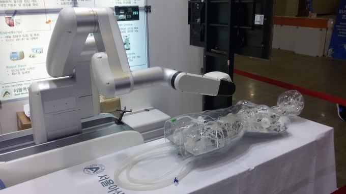 °¡Àå ´«¿¡ ¶è Á¦Ç°Àº Çö´ëÁß°ø¾÷ÀÇ ¹Ù´Ã»ðÀÔÇü ÁßÀç½Ã¼ú ·Îº¿½Ã½ºÅÛÀ̾ú´Ù. ÀǷ῵»óÀ» ÀÌ¿ë, ÈäºÎ³ª º¹ºÎ µîÀÇ º´º¯¿¡ ·Îº¿À» ÅëÇØ ¹Ù´Ã»ðÀÔ »ý°Ë°ú ¾à¹° ¹× Àü±ØÄ¡·á¸¦ ¼öÇàÇÏ´Â ÀÌ ½Ã½ºÅÛÀº ȯÀÚ³ª ÀÇ»çÀÇ ¹æ»ç¼± ÇÇÆø À§ÇèÀ» ÁÙÀÏ ¼ö ÀÖ´Ù´Â Æò°¡¸¦ ¹Þ°í ÀÖ´Ù.