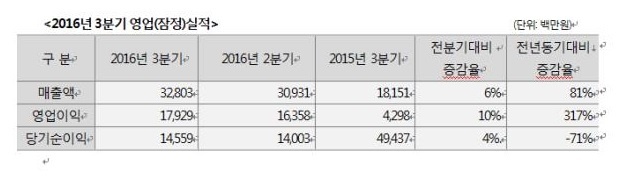 ¸ÅÃâ¾×°ú ¿µ¾÷ÀÌÀÍÀº Àü³âµ¿±â´ëºñ °¢°¢ 81%, 317%·Î Å©°Ô Áõ°¡ÇßÀ¸¸ç »ç»ó ÃÖ´ë ºÐ±â½ÇÀûÀ» ´Þ¼ºÇß´ø Á÷ÀüºÐ±âº¸´Ùµµ °¢°¢ 6%, 10% Áõ°¡Çß´Ù. ¶ÇÇÑ ¿µ¾÷ÀÌÀÍ·ü ¿ª½Ã 55%¸¦ ±â·ÏÇϸç ÀÌÀÍ·ü Ãø¸é¿¡¼µµ »ç»ó ÃÖ´ë½ÇÀûÀ» ±â·ÏÇß´Ù.