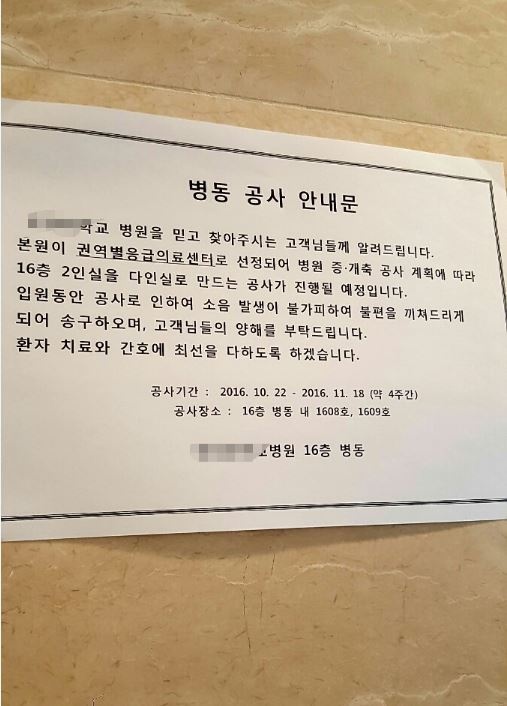 Y´ëº´¿ø °ü°èÀÚ´Â “ÇöÀç ÀÔ¿ø½Ç °ø»ç·Î ÇѰ³ º´µ¿ ÀÚü¸¦ ºñ¿ü´Ù. ÀÌ·Î ÀÎÇØ ȯÀÚ ¼¯ÀÓ Çö»ó, ±âÁ¸ ȯÀÚ µ¿¼± È¥¶õ µîÀÇ ¹®Á¦°¡ »ý°å´Ù"°í ¹àÇû´Ù.