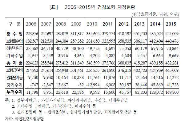 ¿¹»êÁ¤Ã¥Ã³´Â °Ç°º¸Çè ´©ÀûÀû¸³±ÝÀÇ °ú¼ÒÆí¼ºÀÌ °Çº¸ÀÇ ´©ÀûÈæÀÚ¿¡¼ ºñ·ÔµÆ´Ù°í ÁÖÀåÇß´Ù. °Çº¸ ´©ÀûÀû¸³±ÝÀÌ Áö³ 2015³â ±âÁØ 16Á¶9800¾ï¿ø¿¡ À̸£ÀÚ ±¹°íÁö¿ø Çʿ伺ÀÌ ¾àÇØÁ³´Ù´Â °ÍÀÌ´Ù.