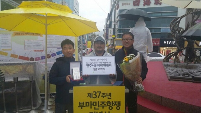 ÃÖ±Ù ÁøÁÖÀÇ·á¿ø ½Ã¹Î´ëÃ¥À§¿øÈ¸´Â ÀÌ·± °øÀ» ÀÎÁ¤¹Þ¾Æ ºÎ»ê¹ÎÁÖÇ×Àï±â³ä»ç¾÷ȸÀÇ Á¦25ȸ ¹ÎÁֽùλóÀ» ºÎ»ê¹ÎÁֽùξð·Ð¿¬ÇÕ°ú ÇÔ²² °øµ¿¼ö»óÇß´Ù.