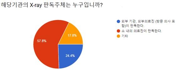X-ray ¿µ»ó ÆÇµ¶ÀÇ °æ¿ì, Àü¹®ÀûÀÎ ÆÇµ¶À» À§ÇØ ¿ÜºÎ±â°ü, ¿ÜºÎÀÇ·áÁø¿¡ ÀÇ·ÚÇÑ´Ù°í ´äÇÑ ±â°üÀÇ ºñÀ²Àº ¾à 24.4%(11°³ ±â°ü)¿´À¸¸ç, ¾à 57.8%(26°³ ±â°ü)¿¡¼ ±â°ü ³» ÀÇ·áÁøÀÌ ÆÇµ¶ÇÑ´Ù°í ´äÇß´Ù.
