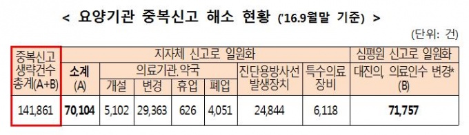 °Ç°º¸Çè½É»çÆò°¡¿øÀÌ ¿Ã 1¿ùºÎÅÍ º¸°ÇÀÇ·áÀÚ¿ø ½Å°íÀÏ¿øÈ Á¦µµ¸¦ ½ÃÇàÇÑ °á°ú, Áߺ¹½Å°í 14¸¸°ÇÀÌ ÁÙ¾îµç(9¿ù¸» ±âÁØ) °ÍÀ¸·Î ³ªÅ¸³µ´Ù.