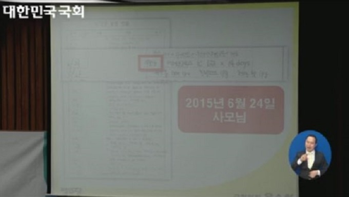 Á¤ÀÇ´ç À±¼ÒÇÏ ÀÇ¿øÀº û¿Í´ë ÀǾàǰ ºÒÃâ´ëÀå¿¡ "2015³â6¿ù24ÀÏ '»ç¸ð´Ô' À̶ó´Â ´Ü¾î°¡ ±â·ÏµÅ ÀÖ´Ù"°í ¹àÇû´Ù.