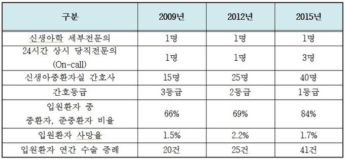 ½Å»ý¾ÆÁýÁßÄ¡·á¼¾ÅÍ Àå¹Ì¿µ ¼¾ÅÍÀåÀº “ÀÌ·¯ÇÑ ¼öÄ¡´Â ÃÖ°íÀÇ Áø·á ¼öÁØÀ» À¯ÁöÇϰí ÀÖÀ½À» ÀÔÁõÇϰí ÀÖ´Ù”¸ç “Áö¿ª ³» °íÀ§Çè ½Å»ý¾Æ¿¡°Ô ¾çÁúÀÇ ÀǷἺñ½º¸¦ Á¦°øÇϱâ À§ÇØ Áö¼ÓÀûÀ¸·Î ³ë·ÂÇÒ °Í”À̶ó°í ¸»Çß´Ù.