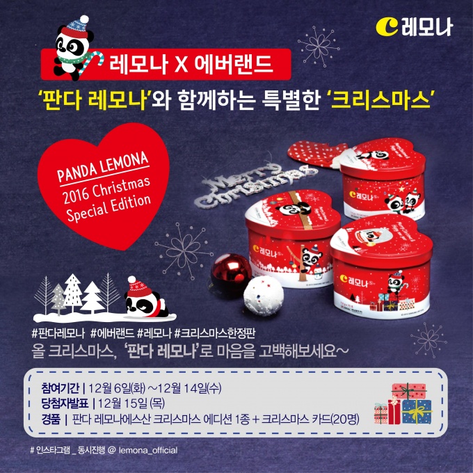 Âü¿©ÇÑ »ç¶÷¿¡°Ô´Â Ãß÷À» ÅëÇØ ‘ÆÇ´Ù ·¹¸ð³ª¿¡½º»ê Å©¸®½º¸¶½º ¿¡µð¼Ç’ 1Á¾°ú Å©¸®½º¸¶½º Ä«µå¸¦ ÃÑ 20¸í¿¡°Ô ¼±¹°·Î ÁõÁ¤ÇÑ´Ù.