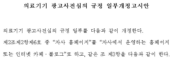¾Õ¼ ½ÄǰÀǾàǰ¾ÈÀüó´Â Áö³ 6ÀÏ ÀÇ·á±â±â ±¤°í»çÀü½ÉÀÇ ¸éÁ¦ ´ë»ó ¸Åü¸¦ ÀÚ»ç ȨÆäÀÌÁö¿¡¼ ÀÎÅÍ³Ý Ä«Æä¿Í ºí·Î±×·Î È®´ëÇÏ´Â ³»¿ëÀÇ ÀÇ·á±â±â ±¤°í»çÀü½ÉÀÇ ±ÔÁ¤ ÀϺΰ³Á¤°í½Ã¾ÈÀ» ÇàÁ¤¿¹°íÇÑ ¹Ù ÀÖ´Ù.