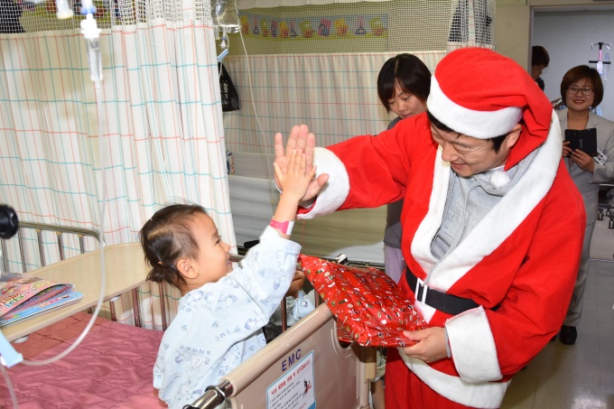 ƯÈ÷ À̹ø Çà»ç¿¡ Àç´É±âºÎ·Î Âü¿©ÇÑ À̼ö±Ù ¾¾´Â »êŸ º¹ÀåÀ» Âø¿ëÇÏ°í º´½ÇÀ» µ¹¸ç ¾î¸°ÀÌ ¹× ³ëÀÎ µî ÀÔ¿ø ȯÀڵ鿡°Ô ¼±¹°À» Á÷Á¢ Àü´ÞÇß´Ù.