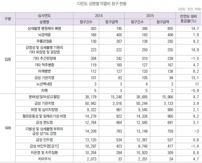 Àü¹®ÀǾàǰ°ú ÀϹÝÀǾàǰ û±¸±Ý¾×Àº µ¿¹Ý »ó½ÂÇØ Áö³ÇØ Àü¹®ÀǾàǰ û±¸°Ç¼ö´Â 6¾ï7146¸¸°Ç 13Á¶3454¾ï¿øÀ¸·Î °°Àº ±â°£ ´ëºñ 5% Áõ°¡ÇßÀ¸¸ç ÀϹÝÀǾàǰ ¿ª½Ã 5805¾ï¿øÀ» û±¸ÇØ 1.5% ¼ÒÆø ´Ã¾ú´Ù.