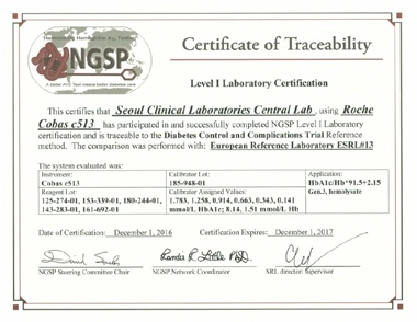 Àç´Ü¹ýÀÎ ¼¿ïÀǰúÇבּ¸¼Ò(SCL) ÀÓ»ó½ÃÇèÁö¿ø»ç¾÷ºÎ(Central-Lab, ÀÌÇÏ C-Lab)°¡ ÃÖ±Ù ±¹Á¦Ç¥ÁØÈÇÁ·Î±×·¥ÀÎ NGSP·ÎºÎÅÍ ÃֽŠÀåºñ(Roche Cobas C513)¸¦ ÀÌ¿ëÇÑ ´çÈÇ÷»ö¼Ò °Ë»ç¿¡ ´ëÇØ '·¹º§¥°' ÀÎÁõÀ» ȹµæÇß´Ù.
