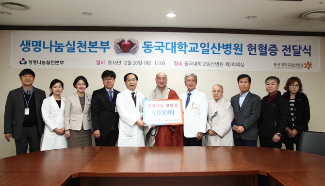 »ç´Ü¹ýÀÎ »ý¸í³ª´®½Çõº»ºÎ(ÀÌ»çÀå ÀÏ¸é ½º´Ô)´Â 20ÀÏ µ¿±¹´ëÇб³ Àϻ꺴¿ø(¿øÀå ¿À¹Î±¸)¿¡ ¾î·Á¿î ȯÀÚ¸¦ À§ÇØ ½á´Þ¶ó¸ç ÇåÇ÷Áõ 5000¸Å¸¦ ±âÁõÇß´Ù.