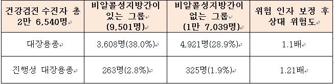 ¼ÕÈñÁ¤, °û±Ý¿¬ ±³¼öÆÀÀº “°Ç°°ËÁø µî¿¡¼ ºñ¾ËÄݼºÁö¹æ°£ÀÌ È®ÀεǴ ½ÃÁ¡¿¡ ÀÌ¹Ì ´ëÀå¿ëÁ¾ÀÌ ¹ß»ýÇØ °Ç°À» À§ÇùÇÏ´Â ¿ä¼Ò·Î ÀÚ¸® Àâ¾ÒÀ» °¡´É¼ºÀÌ ³ô´Ù”°í ¼³¸íÇß´Ù.