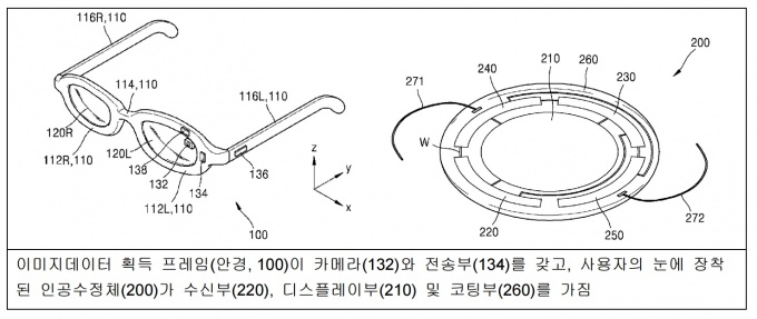Ȳȣ½Ä ±³¼ö°¡ ¹ß¸íÇÑ ½Ã°¢ º¸Á¶ÀåÄ¡´Â °¢¸·ÀÌ½Ä ´ë½Å¿¡ Ư¼öÇÑ Àΰø¼öÁ¤Ã¼¸¦ ¾È±¸¿¡ »ðÀÔÇØ ½Ã·Âȸº¹À» ÇÏ´Â ¹æ¹ý¿¡ ¾²ÀδÙ. Àΰø¼öÁ¤Ã¼¿Í ȯÀÚ°¡ Âø¿ëÇÏ´Â ¾È°æ ÇüÅÂÀÇ ÇÁ·¹ÀÓ¿¡ ƯÇã ±â¼úÀÌ ¹Ý¿µµÆ´Ù.