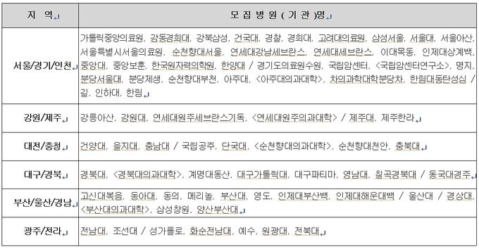 ÀÌµé º´¿ø ¿Ü¿¡ ¼º°¡·Ñ·Îº´¿ø(3¸í), ºÐ´çÂ÷º´¿ø(2¸í), µ¿±¹´ë°æÁÖº´¿ø(2¸í), ¼øÃµÇâõ¾Èº´¿ø(1¸í), °¸ª¾Æ»êº´¿ø(1¸í) µîµµ ³»°ú Àü°øÀÇ Ãß°¡¸ðÁý¿¡ ³ª¼±´Ù. |