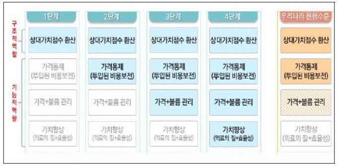 ¸¶Áö¸· 3´Ü°è´Â °¡Ä¡Æò°¡°¡ º»°ÝÀûÀ¸·Î ¼öÇàµÇ´Â °ÍÀ¸·Î ÀÇ·áÀÇ Áú°ú ºñ¿ë´ëºñ È¿°ú¼ºÀ» °ËÁõÇØ ¾çÁúÀÇ ¼ºñ½º¸¦ ÁøÇàÇÏ´Â °³º°±â°ü ´ë»óÀ¸·Î Àμ¾Æ¼ºê°¡ ºÎ¿©µÅ¾ß ÇÏ´Â ÃÖÁ¾ ¸ñÇ¥¸¦ À̲ø¾î³»´Â °ÍÀÌ´Ù. ¿©±â¼ ȯ»êÁö¼ö¸¦ ¿¬°èÇØ °¡Ä¡Æò°¡¸¦ ¿Ï¼º½ÃŰ´Â ±¸Á¶´Ù.