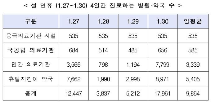 º¸°Çº¹ÁöºÎ(Àå°ü Á¤Áø¿±)´Â ¼³ ¿¬ÈޱⰣ ±¹¹ÎµéÀÇ ÀÇ·áÀÌ¿ë ºÒÆíÀ» ÃÖ¼ÒÈÇϱâ À§ÇØ Áö¿ªº° ÀÇ»ç․¾à»çȸ¿Í ÇùÀÇÇØ ÀÀ±ÞÁø·á±â°ü ¹× ÈÞÀÏÁöÅ´ÀÌ ¾à±¹À» ÁöÁ¤‧¿î¿µÇÑ´Ù°í 25ÀÏ ¹àÇû´Ù