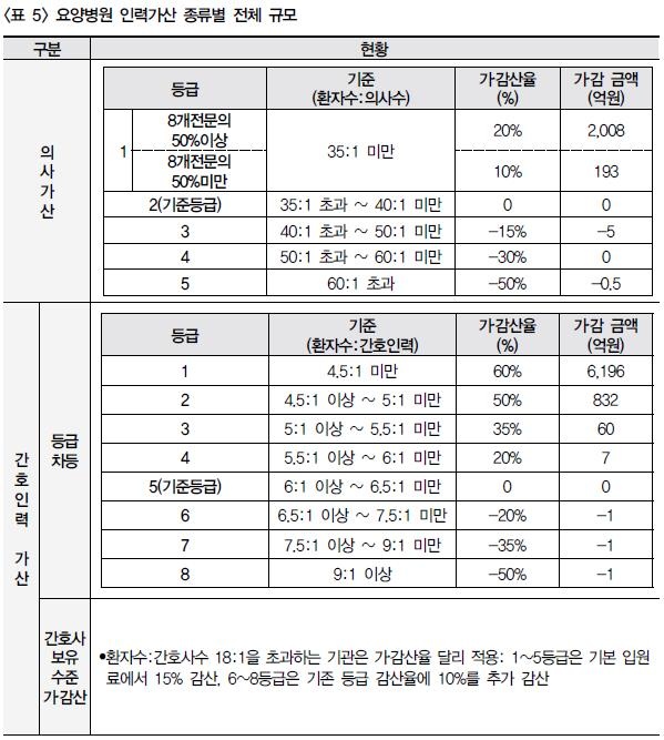 ÀÌ Ã³·³ ÃÑ Áø·áºñ¿¡¼ Å« ±Ô¸ð¸¦ Â÷ÁöÇϰí ÀÖ´Â Àη °¡»ê ºñ¿ëÀº ÃÖÃÊ µµÀÔ ½Ã ¿ä¾çº´¿øÀÇ °ø±Þ Ȱ¼ºÈ ¹× Áú Çâ»óÀÌ ÀÏÁ¤ ¼öÁØ¿¡ µµ´ÞÇÒ °æ¿ì ÆóÁöÇϱâ·Î Çß´ø ÇѽÃÀû Á¦µµ¿´´Ù. ÇÏÁö¸¸ ±× ±âÁØ ¹× ¹üÀ§¸¦ Á¶Á¤ÇÏ´Â ¹æÇâÀ¸·Î ¼ö°¡ °³Á¤ÀÌ ÀÌ·ïÁø »óȲÀÌ´Ù.