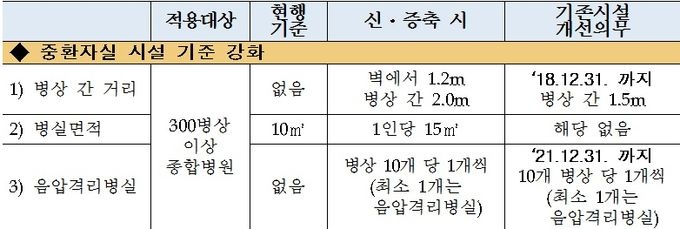 ÁßȯÀÚ½ÇÀÇ º´»ó °£ °Å¸®µµ È®´ëµÈ´Ù. ½Å·ÁõÃàÀÇ °æ¿ì º´»ó °£ °Å¸®¸¦ 2m ÀÌ»ó È®º¸ÇØ¾ß Çϰí, ±âÁ¸ ½Ã¼³Àº 2018³â 12¿ù 31ÀϱîÁö 1.5m·Î ¸ÂÃç¾ß ÇÑ´Ù.