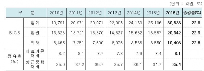 Áö³ÇØ ºò5º´¿øÀ» Áß½ÉÀ¸·Î »ó±ÞÁ¾ÇÕº´¿øµéÀÇ Áø·á½ÇÀû »ó½Â¼¼°¡ µµµå¶óÁ³´Ù. ¹Ý¸é ÀÇ¿ø±Þ ÀÇ·á±â°üµéÀº ¿ÀÈ÷·Á Áø·áºñ Áõ°¡À²ÀÌ µÐȵǰí Á¡À¯À²ÀÌ Ç϶ôÇß´Ù.