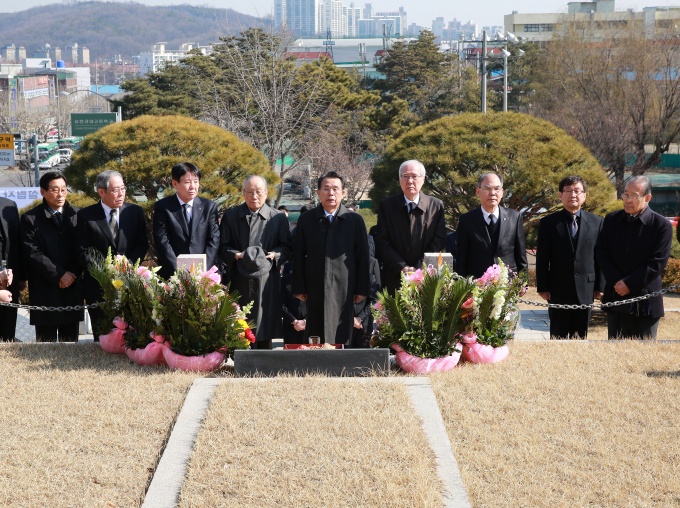 Çà»ç¿¡ ¾Õ¼ À¯ÇѾçÇà ÀÓÁ÷¿øµéÀº À¯ÀÏÇÑ ¹Ú»çÀÇ ¹¦¼ÒÀÎ À¯Çѵ¿»ê¿¡¼ ¹¬³ä°ú Çåȸ¦ ÇÏ¸ç °íÀÎÀ» ±â¸®´Â ½Ã°£À» °¡Á³´Ù.