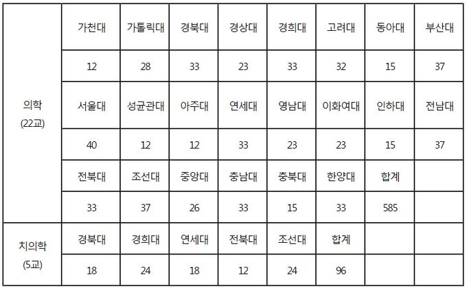 ±³À°ºÎ´Â 12ÀÏ 2018Çг⵵ ÀÇ·Ä¡´ë ÇлçÆíÀÔÇÐ ±âº»°èȹÀ» ¹ßÇ¥ÇÏ°í ¼¿ï´ë·°í·Á´ë·¿¬¼¼´ë·ÀÌÈ¿©´ë¸¦ ºñ·ÔÇÑ 22°³ ÀÇ´ë(585¸í)¿Í ¿¬¼¼´ë·°æÈñ´ë µî 5°³ Ä¡´ë(96¸í)°¡ ÆíÀÔ»ýÀ» ¼±¹ßÇÑ´Ù°í ¹àÇû´Ù.
