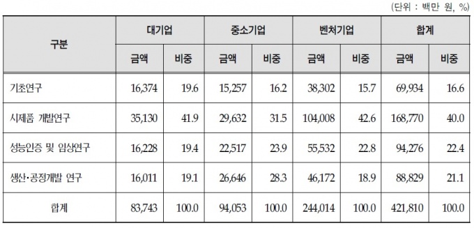 ¿¬±¸°úÁ¤¿¡¼´Â ½ÃÁ¦Ç° °³¹ß¿¬±¸¿¡ °¡Àå ¸¹Àº °³¹ßºñ(40%)°¡ »ç¿ëµÇ´Â °ÍÀ¸·Î ³ªÅ¸³µ´Ù. ¼º´ÉÀÎÁõ ¹× Àӻ󿬱¸°¡ 22.4%, ±âÃÊ¿¬±¸°¡ 16.6% ¼øÀ̾ú´Ù.