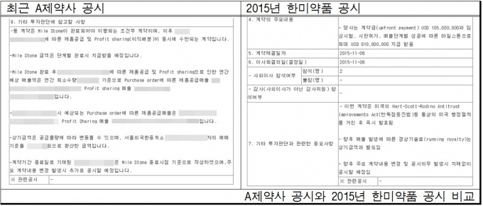 À§ Ç¥¿¡¼ ³ªÅ¸³ªµíÀÌ AÁ¦¾à»ç¿Í Çѹ̾àǰ °ø½Ã¿¡¼ <±âŸ ÅõÀÚÆÇ´Ü°ú °ü·ÃµÈ Áß¿ä »çÇ×>À» ºñ±³ÇÏ¸é ±× Â÷À̰¡ ºÐ¸íÇÏ°Ô µå·¯³´Ù.