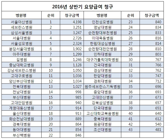 ¼­¿ï¾Æ»êº´¿øÀº Áö³­ÇØ »ó¹Ý±â »ó±ÞÁ¾ÇÕº´¿ø Áß °¡Àå ¸¹Àº 4198¾ï¿øÀÇ ¿ä¾ç±Þ¿©¸¦ û±¸ÇÑ °ÍÀ¸·Î ³ªÅ¸³µ´Ù.