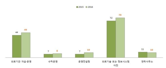 ÁøÃâÀ¯Çüº°·Î´Â ÀÇ·á±â°ü °³¼³․¿î¿µÀÌ 49°Ç, ÀÇ·á±â¼ú ÀÌÀüÀÌ 78°ÇÀ̸ç, ¼öŹ¿î¿µ°ú ¿î¿µÄÁ¼³ÆÃµµ °¢°¢ 8°Ç°ú 10°ÇÀ¸·Î ³ªÅ¸³µ´Ù.