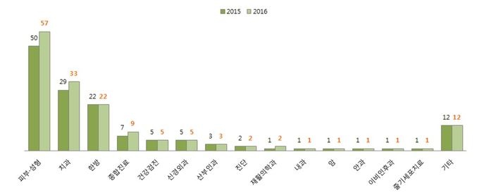 Áø·á°ú¸ñÀº ÇǺÎ․¼ºÇü(50°Ç→57°Ç), Ä¡°ú(29°Ç→33°Ç), Çѹæ(22°Ç) ¼øÀ̸ç, º´¿ø±Þ ÀÌ»ó Àü¹®¼¾ÅÍ µîÀÇ ÁøÃ⼺°úµµ È®ÀεƴÙ.