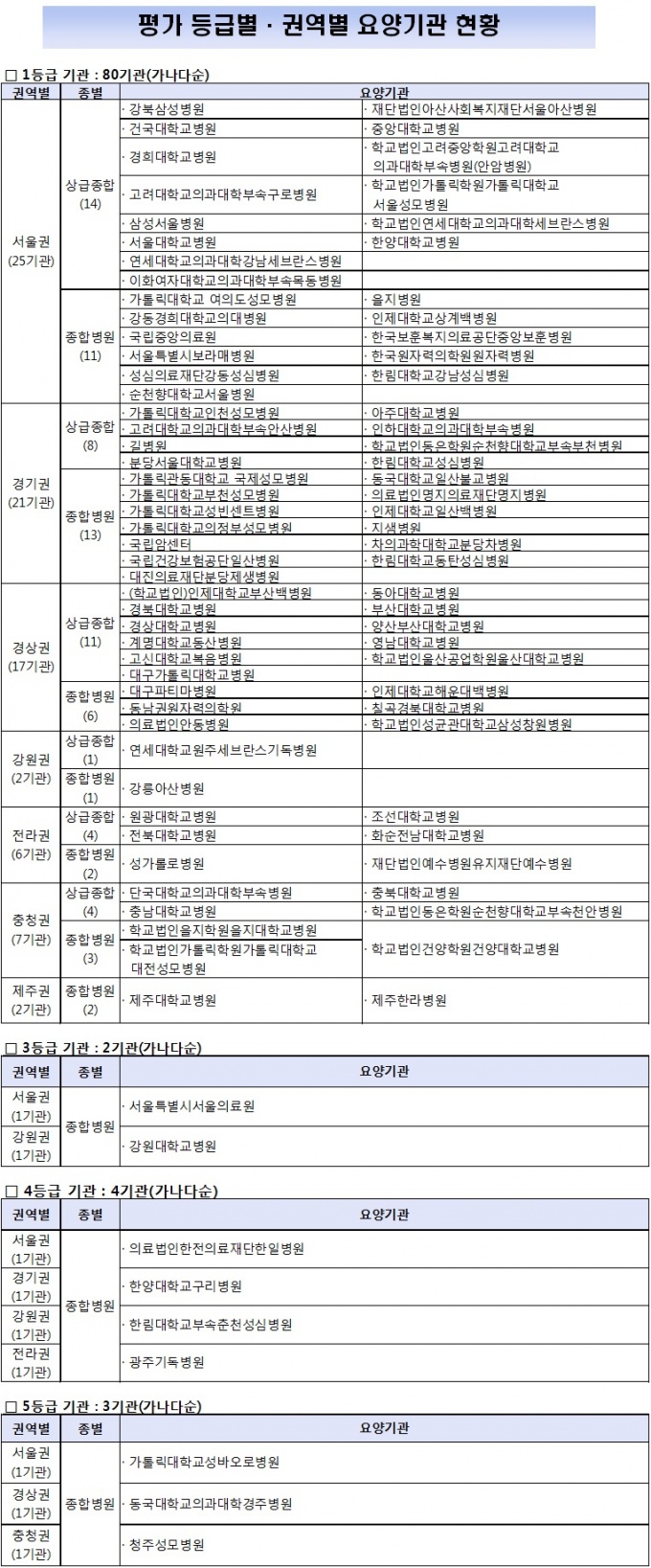 ÃÖÇÏÀ§ µî±ÞÀÎ 5µî±Þ ±â°üÀº ¡ã¼º¹Ù¿À·Îº´¿ø ¡ãµ¿±¹´ë°æÁÖº´¿ø ¡ãûÁÖ¼º¸ðº´¿ø µî 3°÷À¸·Î °³¼±ÀÌ ÇÊ¿äÇÑ °ÍÀ¸·Î ³ªÅ¸³µ´Ù.