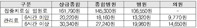 °ü¸®·á´Â Ãʱ⠴ëÀÀ ¹× Ä¡·á ¹æÇâÀÌ °áÁ¤µÇ´Â ÃÖÃÊ 6½Ã°£ ±âÁØÀ¸·Î ±¸ºÐÇØ ÀÔ¿ø·áÀÇ °£È£°ü¸®·á ¼öÁØÀ¸·Î ¼ö°¡°¡ »êÁ¤µÆ´Ù.