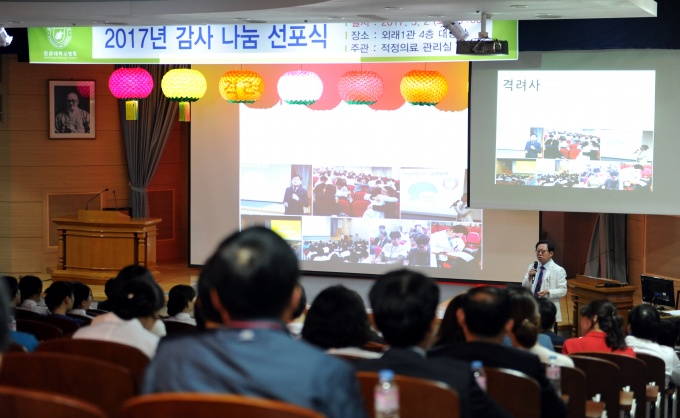 ¿ø±¤´ëÇб³º´¿ø(º´¿øÀå Ãֵοµ)Àº ÃÖ±Ù 4Ãþ ´ë°´ç¿¡¼ ±àÁ¤ÀÇ Á¶Á÷¹®È ±¸ÇöÀ» À§ÇÑ '°¨»ç ³ª´® ¼±Æ÷½Ä'À» °³ÃÖÇß´Ù.